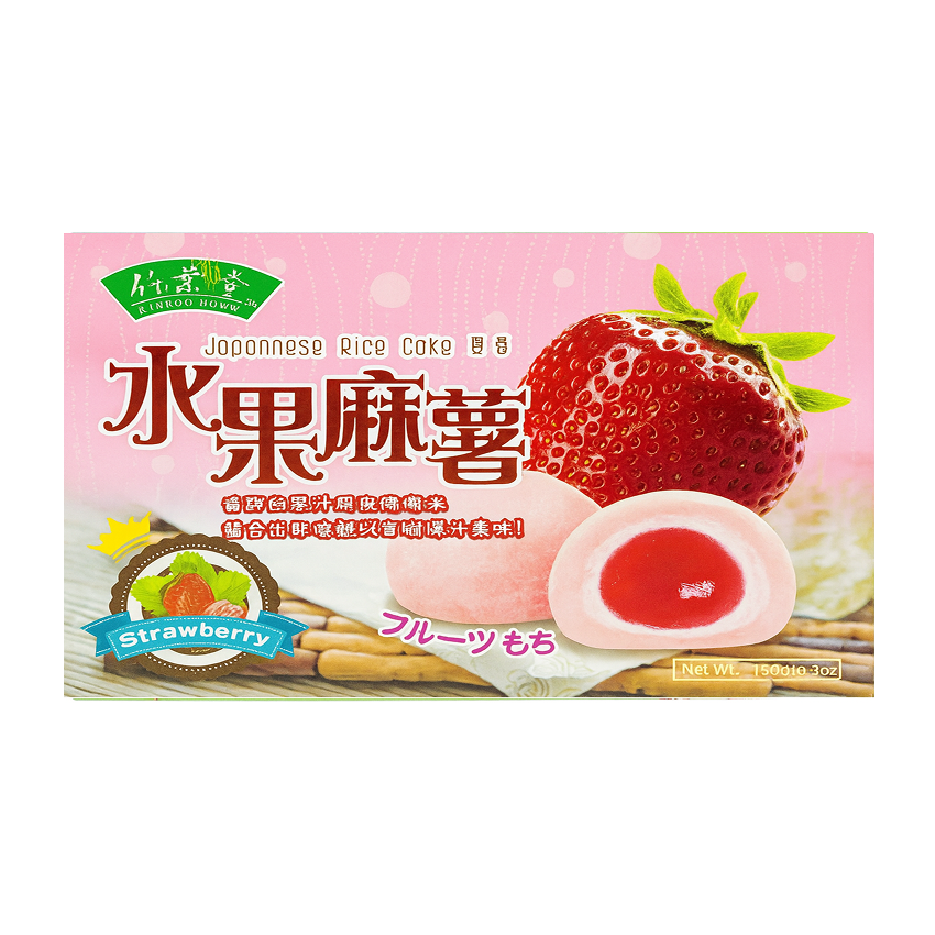 Классические японские моти с ярким клубничным вкусом и мягкой воздушной текстурой. Эластичная рисовая оболочка приятно тянется и раскрывает сладко-ягодную начинку с мягким кисло-сладким оттенком. Внутри - нежная, почти джемовая фруктовая масса, которая сочетается с мягкостью оболочки. Вкус напоминает клубничный десерт из свежих ягод, а аромат делает каждую порцию особенно аппетитной. Отлично подходят для чая и как лёгкое сладкое угощение.
