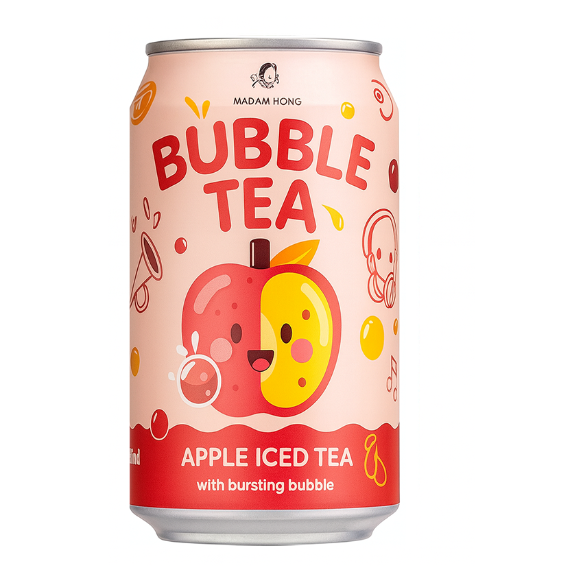 Bubble Tea Madam Hong Напиток холодный чай Бабл Ти со вкусом яблокаТайвань, 320 мл