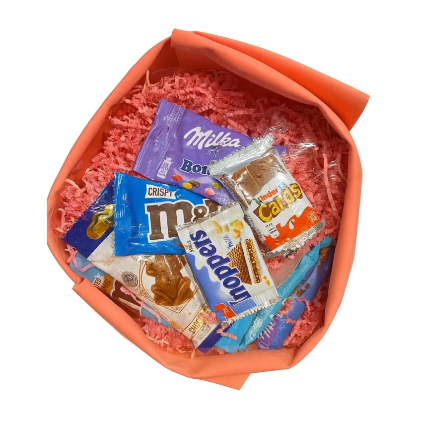 Сладкий букет с M&M’s, Milka, Kinder и Twix — яркий и вкусный подарок для настоящих сладкоежек. В наборе сочетаются шоколад, вафли, печенье и необычные драже, создавая разнообразие вкусов и текстур в одной эффектной композиции.