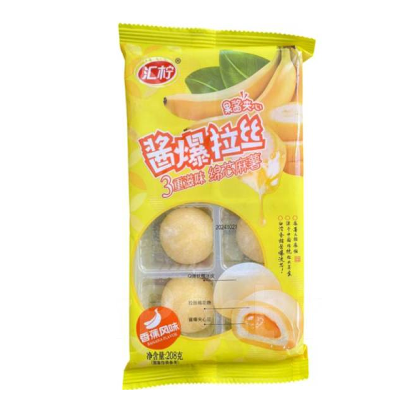 Составмальтозный сироп, мука из клейкого риса, питьевая вода, крахмал, банановый ароматизированный соус (комплексная приправа) (добавлено >10%), зефир (добавлено >8%), трегалоза, кондитерский жир, пищевые добавки (гидроксипропилдикрахмалфосфат (Е1442), желатин (Е441), моно- и диглицериды жирных кислот (Е471)), бета-каротин (Е160а)), комплексная приправа, пищевой ароматизатор.