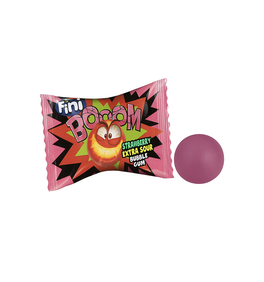 FINI Boom карамель леденцовая Клубника кислая с жев. резинкой 5 гр