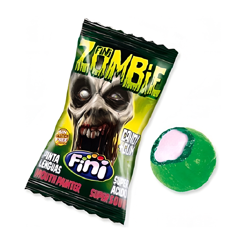 Маленькая, но яркая конфета в стиле «зомби» с жвачкой внутри. Создаёт эффект неожиданного вкусового взрыва: сначала хрустящая карамель, затем мягкая, сочная жевательная резинка.