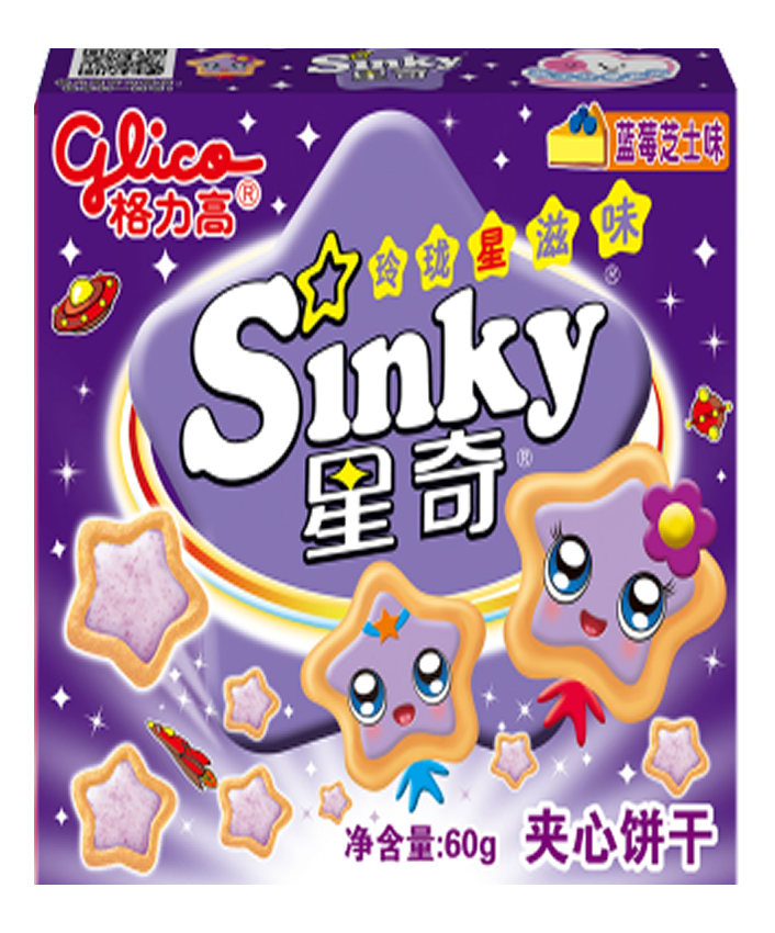 Печенье Sinky в виде звезд с клубничным/шоколадным/ченричным наполнителем. Печенье было придумано китайским отделение компании Glico. Глико - производитель такого известно печенья, как палочки Pocky.