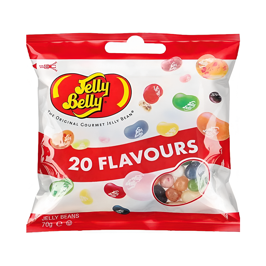 Jelly Belly 20 flavours - это жевательный мармелад с 20 различными вкусами. В упаковке содержится 70 грамм продукта, упакованного в удобный дой-пак.