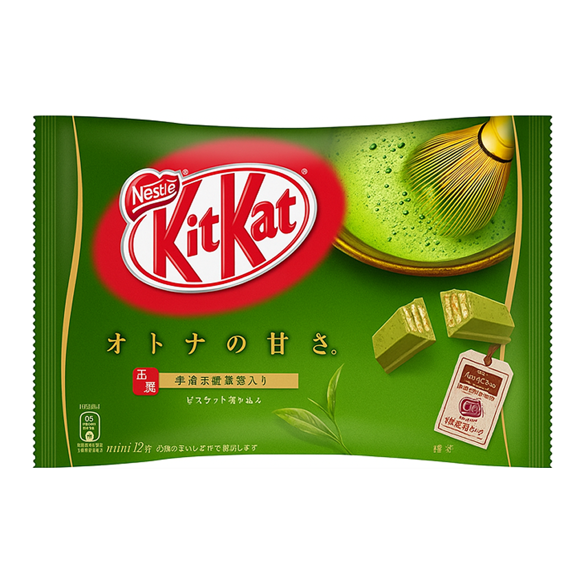 Японский кит кат с зеленым чаем матча. Вкус сочетает сладость белого шоколада и чайную горчинку. Вафля хрустящая и легкая. Десерт обладает оригинальным вкусом. Подходит для любителей японских сладостей.