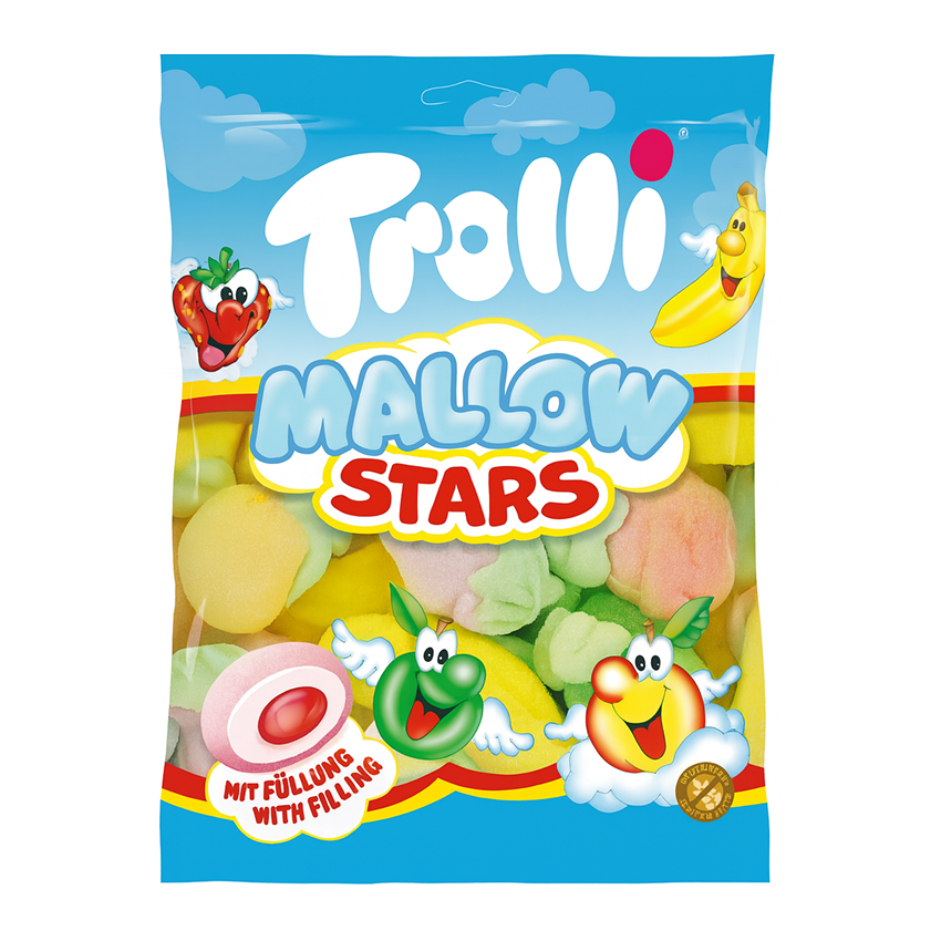 Звёздочки Trolli - это мягкие, пушистые маршмеллоу с деликатным ароматом и сбалансированной сладостью. Форма хорошо сохраняется, что делает продукт отличным выбором для декора тортов, сладких сетов и праздничных напитков. Лёгкая фруктовая нота подчёркивает нежность ванильной основы, создавая лёгкий и приятный вкус.