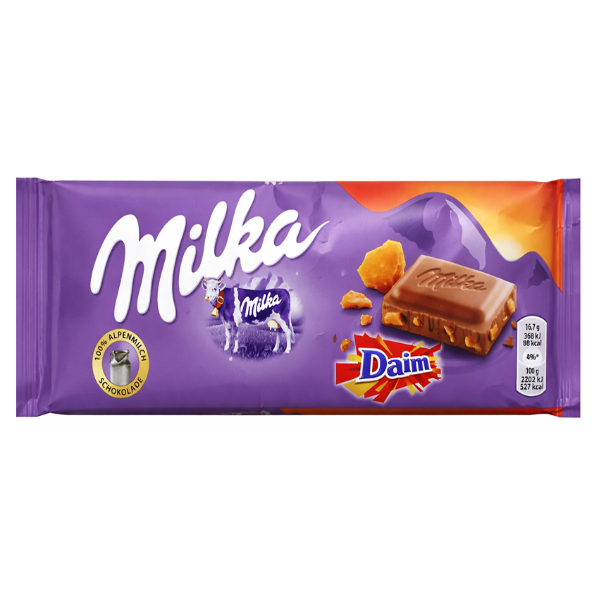 Со вкусом Milka Daim Альпы становятся родными и близкими: нежнейший шоколад Милка, в сочетании с карамельными конфетами Daim и отборным миндалем, невозможно забыть.