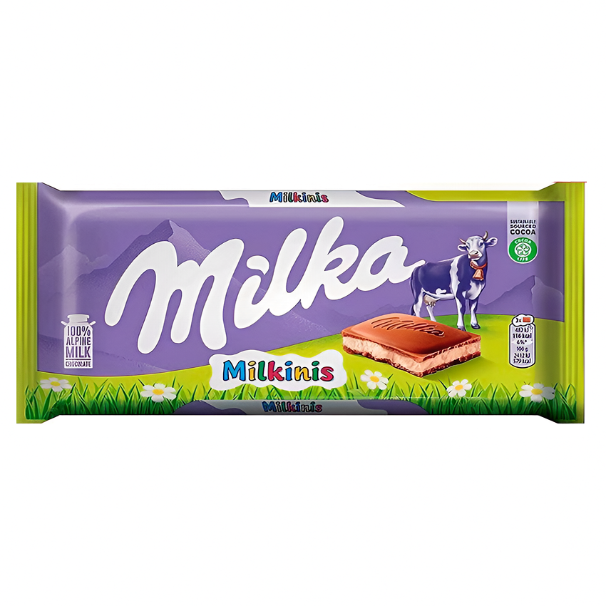 Милка с удивительной плиткой молочного шоколада Milka Milkinis.Шоколадное лакомство сделано специально для детей.