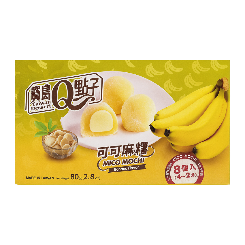 Нежные моти, в которых глубокий шоколадный аромат какао соединяется со сладким вкусом спелого банана. Эластичная оболочка из клейкого риса мягко тянется и тает во рту, открывая густую ароматную начинку с банановым кремом. Вкус напоминает десерт «банан в шоколаде», только в более мягкой, бархатистой форме. Подходят для любителей сладкого с фруктовым акцентом и мягкой текстурой.