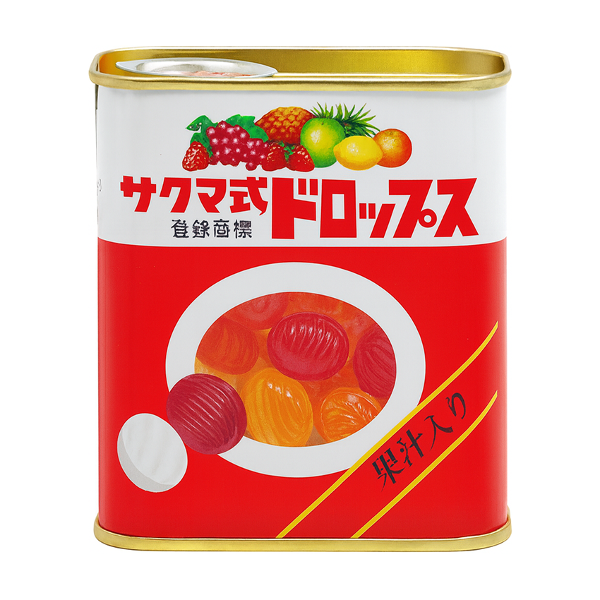 Sakuma Fruit Drops - легендарная японская карамель, известная по культуре и кинематографу. Ассорти фруктовых леденцов в стильной жестяной банке стало классикой. Вкус чистый, яркий, натуральный — каждая конфета выделяется своей фруктовой нотой. Продукт часто покупают в качестве подарка и коллекционной сладости.