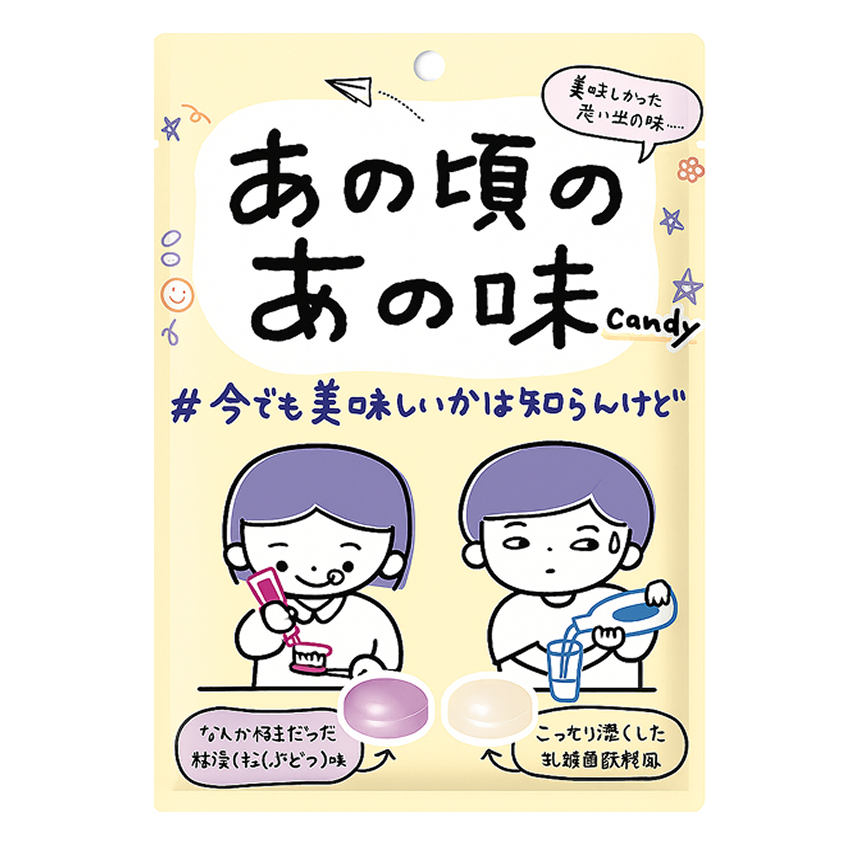 Уникальный японский вкус, сочетающий сладкий виноград и мягкую газировку с молочной ноткой. Леденцы создают ощущение лёгкой «пенной» сладости, напоминая популярные напитки Calpis и Ramune.