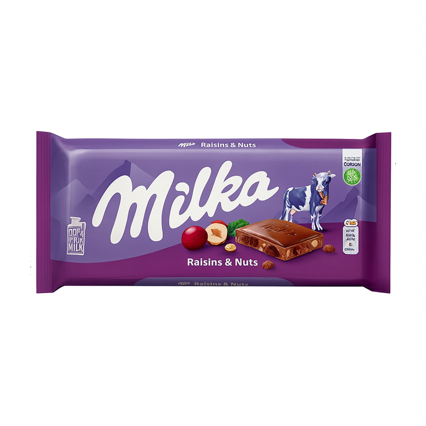 Шоколад молочный Милка с изюмом и лесным орехом 90г / Milka Raisins&Hazelnuts Chocolate 90g