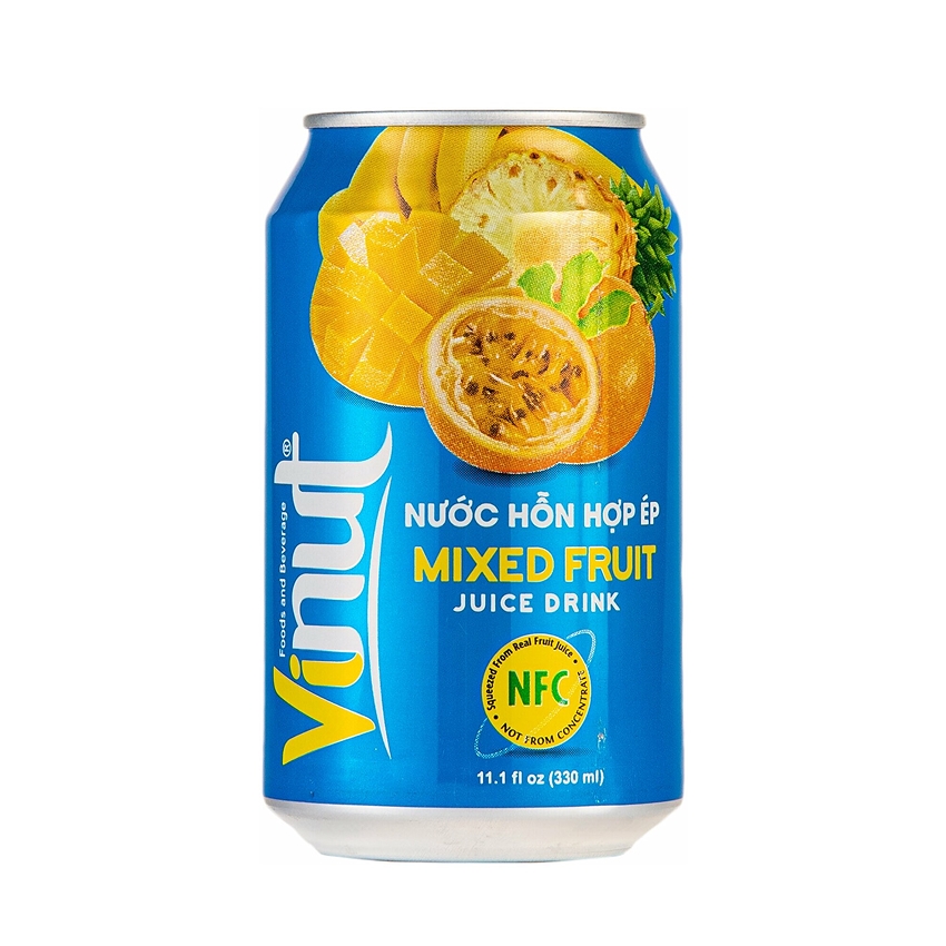 Напиток Vinut Mixed Fruit с фруктовым миксом - полезный, вкуснейший напиток из Вьетнама, содержащий местные и исключительно натуральные продукты. Vinut с фруктовым миксом - это сумасшедший микс экзотических соков в одной баночке! Посмотрите сами, в состав входят сок ананаса, сок манго, сок маракуйи, сок банана, фруктовый экстракт и вьетнамский тростниковый сахар! Великолепный, бодрящий, поднимающий настроение напиток из натуральных ингредиентов! Наверно лучший в линейке напитков из Вьетнама Vinut. Vinut - бренд напитков вьетнамской компании the Nam Viet Foods & Beverage Co., одного из крупнейших производителей напитков и продуктов питания во Вьетнаме.