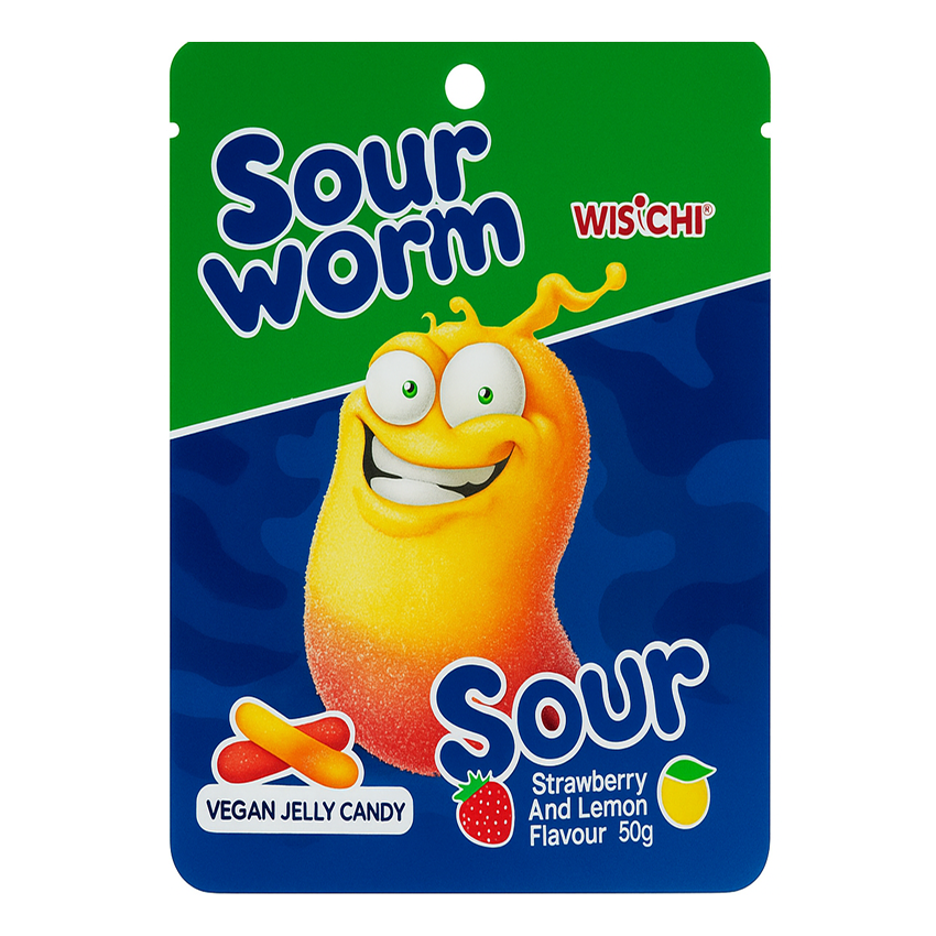 Wisichi Мармелад жевательный "Кислый червячок" со вкусом клубники и мушмула 20 гр
